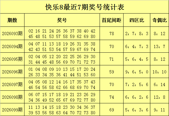 福彩快乐8第2026099期开出奖号:11 13 14 15 18 23 30 34 36 37 39 53 56 58 63 64 70 72 73 80,其中奖奇偶比9:11,四区比为5:6:3:6,跨度为:69。